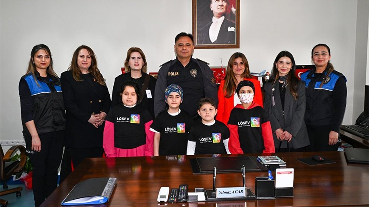 Adana’da lösemili çocuklar, ‘Polis Haftası’ kapsamında Emniyet’i ziyaret etti;