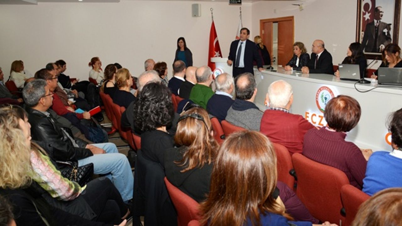 Toplantıya katılan eczacılar, SGK mevzuatı ve protokollerle ilgili yaşadıkları sıkıntıları dile getirerek çözümü konularında bilgi sahibi oldular.