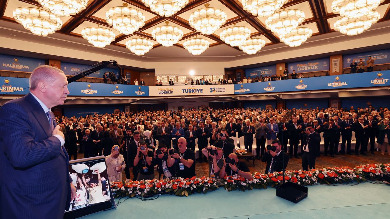Son olarak partililere seslenen Erdoğan, “Daha çok çalışacak, daha çok sahada olacağız. Halkımıza doğruları sabırla anlatacağız. Tevazu ile vatandaşımızla iç içe olacağız. Bu tevazu bizi halkımızın gözünde yüceltecektir. AK Parti 32. İstişare ve Değerlendirme Toplantısı’nın hayırlara vesile olmasını diliyorum” ifadeleriyle konuşmasını tamamladı.