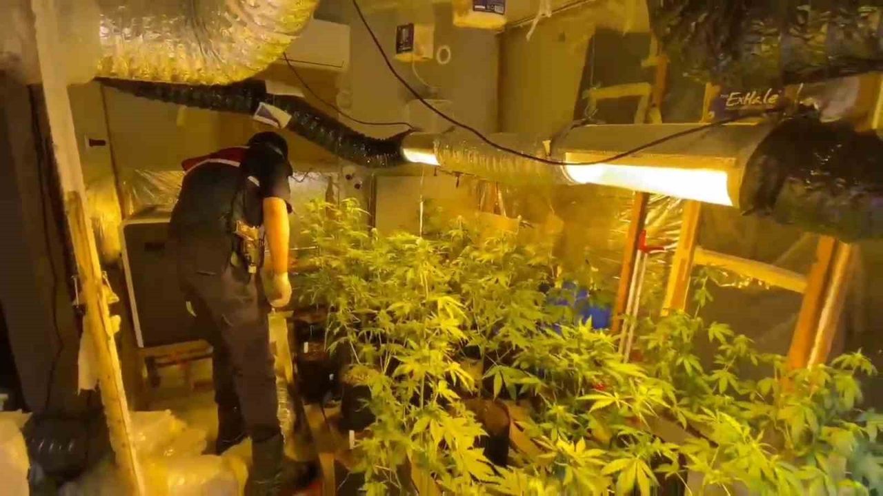 Yapılan aramalarda, özel iklim kontrolü sağlanan bir alanda yetiştirilen 28 kök kenevir bitkisi, 55 gram kubar esrar, 5 kilogram gübre ve 1 adet uyuşturucu kullanma aparatı ele geçirildi.