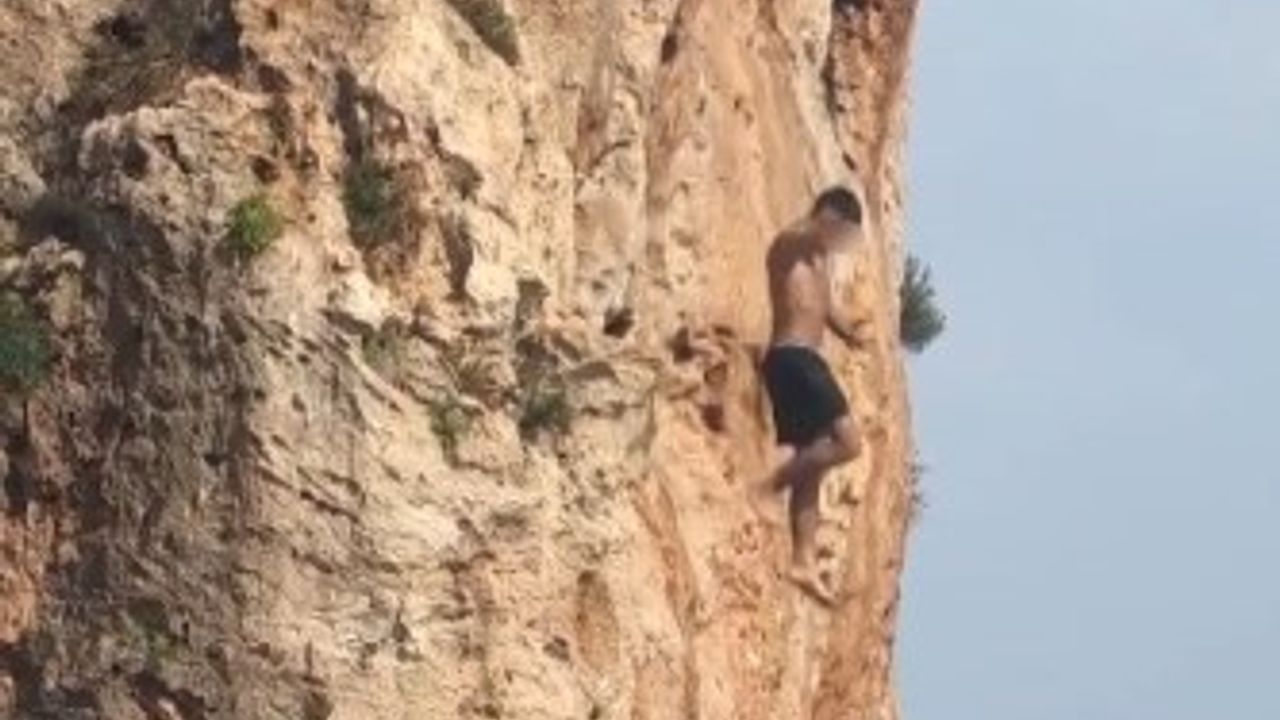Olay, Konyaaltı ilçesi dünyaca ünlü Konyaaltı sahilinde bulunan falezlerde meydana geldi. Sıcak havayı fırsat bilen bir genç, sahilde yüzdükten sonra falezlerin bulunduğu kayalık alana doğru ilerledi. Genç, önce falezlere tırmandı, ardından sivri kayalıklardan aşağı doğru atlayabileceği mesafeye kadar inmeye devam etti. Yaklaşık 15 metre yükseklikten denize atlayan genç yürekleri ağza getirirken, o anlar cep telefonu kamerasına yansıdı.