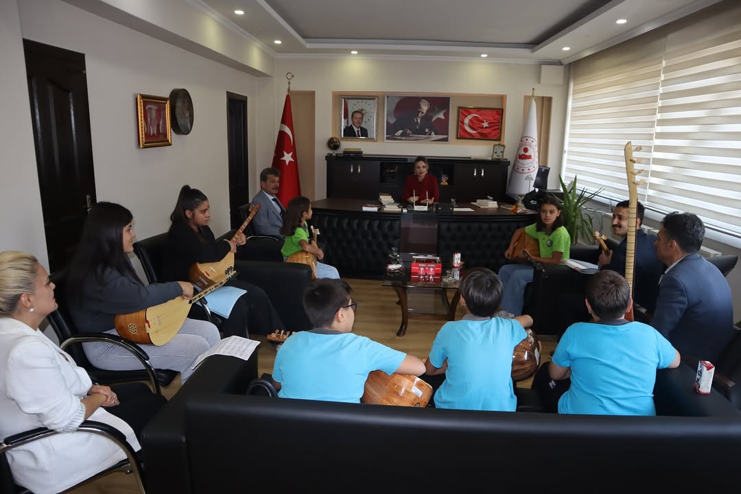 Ziyarette öğrenciler, kurs kapsamında öğrendikleri eserleri bağlama ile çalarak Kaymakam Yılmaz’a sunum yaptı. Öğrencilerin performansı, hem müzik bilgisi hem de sahne becerileri açısından dikkat çekti. Kursiyerlerin gösterisi, makamda samimi ve keyifli bir atmosfer oluşmasını sağladı.