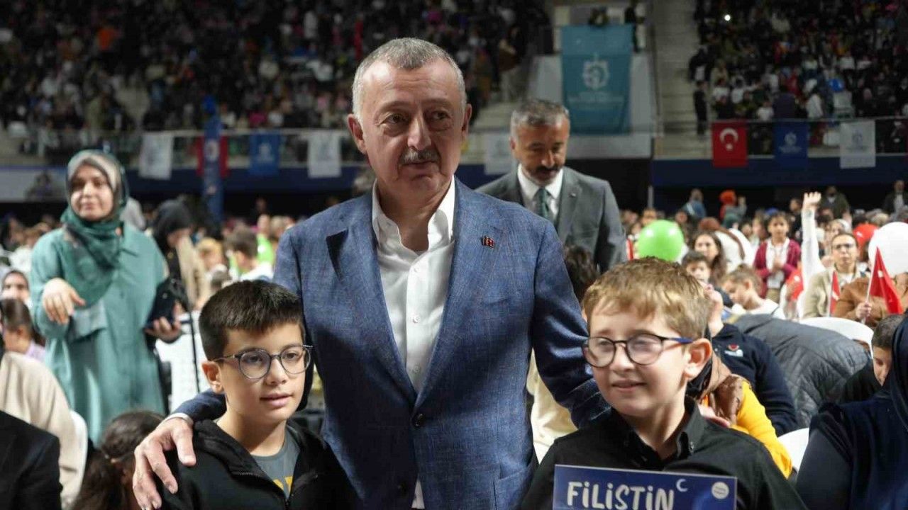 Etkinlikte Kocaeli Büyükşehir Belediye Başkanı Doç. Dr. Tahir Büyükakın, “Filistin Bizim” kitabının son sayfasını binlerce çocukla birlikte okudu. Gazze’de yaşanan zulmün yıl dönümünü hatırlatan Başkan Büyükakın, “Orada sizin gibi çocuklar gece yataklarına aç gidiyorlar. Bombaların sesinden uyuyamıyorlar. Sabah kalktıklarında nasıl bir sabaha kalkacaklarını bilmiyorlar. Uyandıklarında yiyecek bir şey bulamıyorlar. Babalar ve anneler endişeli. Tabi anne ve babaları hayattaysa” dedi.