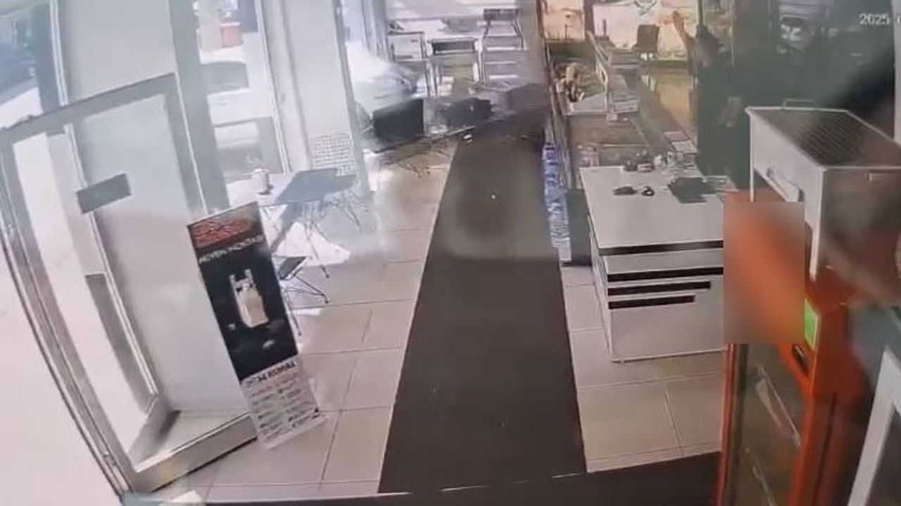 Yaşanan bu anlar ise iş yerinin güvenlik kameraları tarafından kaydedildi. Görüntülerde, sürücünün hızlıca dükkanın içine girdiği ve camın kırıldığı, ardından çalışanların şaşkınlık içinde dışarı çıktığı anlar net şekilde görülüyor.