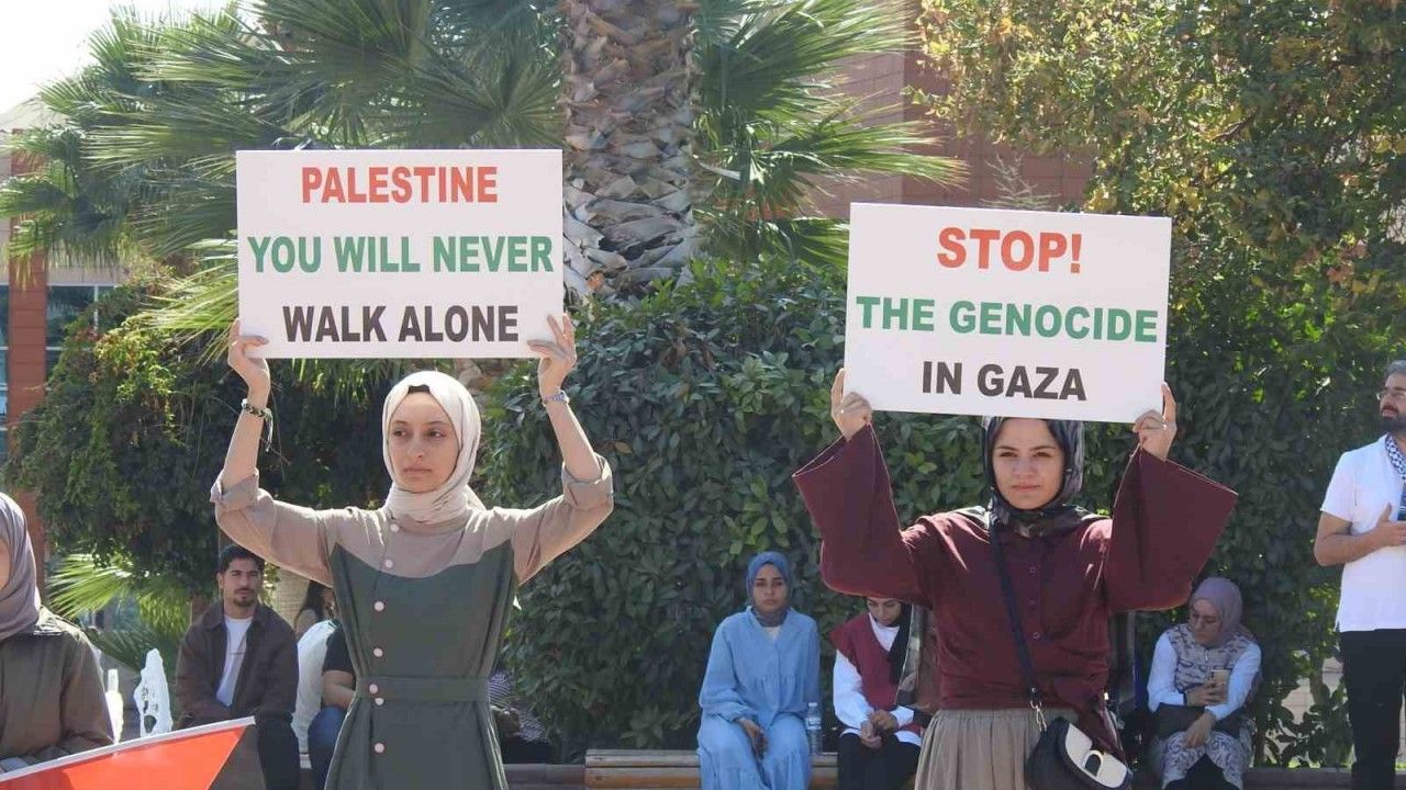 Öğrenciler adına açıklama yapan Ali Anamur, Filistin’de yaşananların tüm insanlığa yönelik bir saldırı olduğunu belirterek şu ifadeleri kullandı: