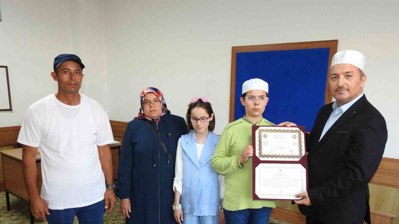 Kahramanmaraş merkezli depremlerde evleri yıkılmasına rağmen eğitimine ara vermeyen Kukur, Kur’an’ı Braille alfabesiyle okuyarak hafız olmayı başardı.