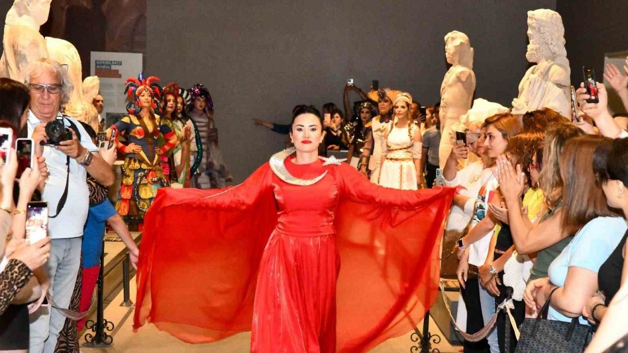 Mersin Arkeoloji Müzesi’nde düzenlenen sergide, Olgunlaşma Enstitüsünün hazırladığı eserler sergilendi. Tarihi eserlerin arasında yürüyen mankenler, hazırlanan 10 tasarımı sergiledi. Defilenin finali, Türk bayrağını yansıtan ay ve yıldız süslemeli kıyafeti taşıyan mankenle yapıldı.