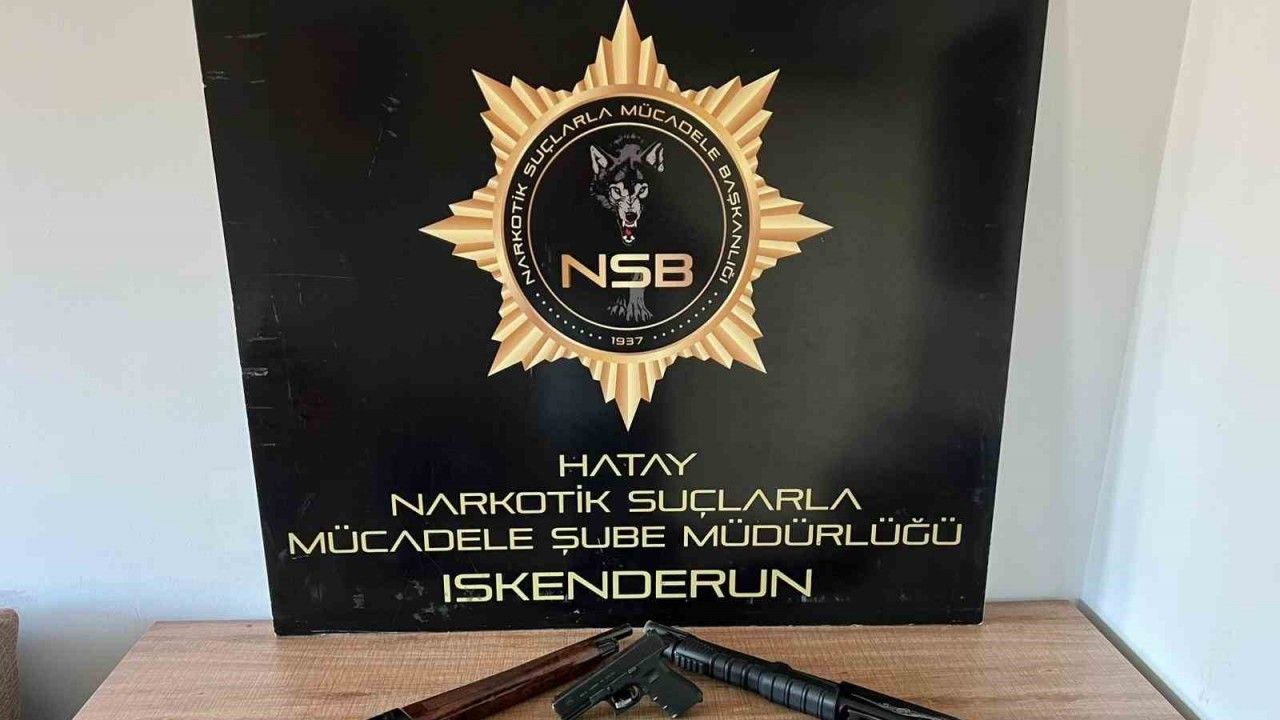Hatay Emniyet Müdürlüğü ekipleri, uyuşturucu imal ve ticaretine yönelik yürüttükleri çalışmalar kapsamında İskenderun Buluttepe Mahallesi’nde İ.G.’ye ait ikamette arama yaptı. Yapılan aramada 2 tüfek, 1 tabanca, 9 fişek ve 29 kartuş bulundu.