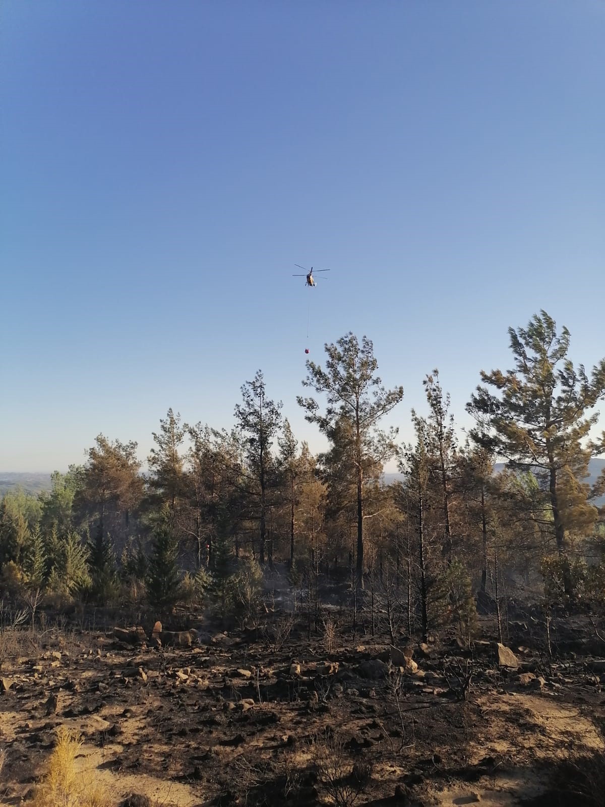 Helikopterler ve arazözlerle müdahale edilen yangın, ekiplerin yoğun çalışması sonucu kontrol altına alınarak söndürüldü.