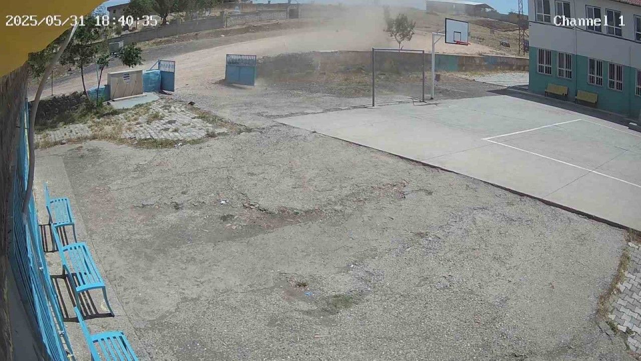 Şiddetli rüzgarla oluşan hortum sırasında okulda öğrenci bulunmaması, olası bir kazanın önüne geçti.