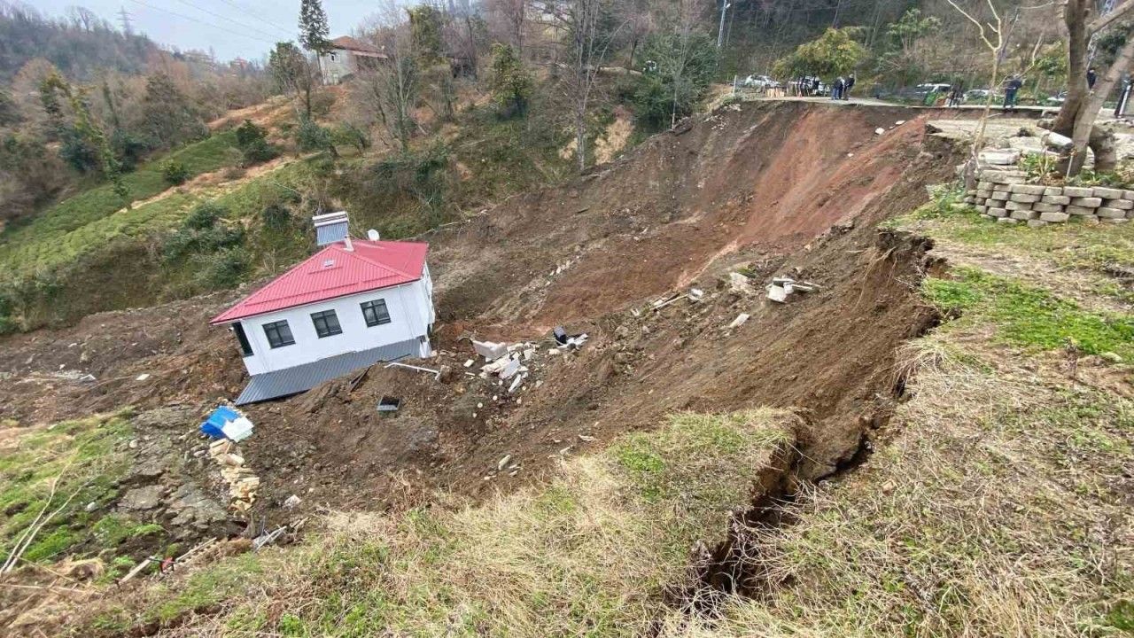 HOPAK Ekip Lideri Emin Üçüncü ise gece komşuların ihbarı üzerine kademeli olarak kaymaya başladığı bilgisini aldıklarını belirterek "Bilirkişi ekipleriyle birlikte incelemelerimiz devam ediyor. Yaklaşık 300 metrelik bir alanda heyelan olmuş durumda. İki katlı ev kademeli olarak bulunduğu yerden 50 metre heyelanla birlikte kaymış durumda. O esnada evin içinde kimsenin olmaması, can kaybını önlemiş oldu. Zeminin balçık şeklinde aktığını görüyoruz. Ekipler çalışmalarını yapıyor. Gerekli önlemler alınıyor, çalışmalarımız devam ediyor" diye konuştu.