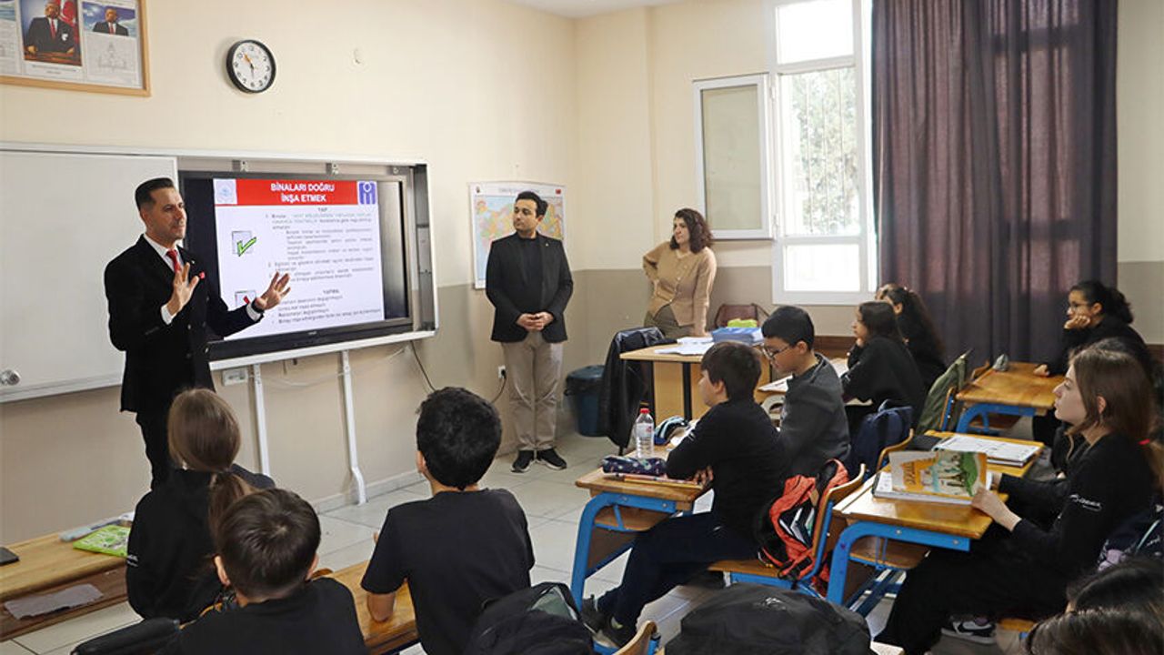 İMO Adana Şube Başkanı Hıdır Çak tarafından gerçekleştirilen ve görsellerle desteklenen sunumda afet türleri, depremlerin oluşum süreci, fay hatlarının hareketleri ve Türkiye’nin deprem gerçeği hakkında öğrencilere bilgi verildi. Çak, özellikle deprem öncesinde alınacak önlemler ile deprem anında ve sonrasında doğru davranış biçimlerinin hayati önem taşıdığına dikkat çekti.