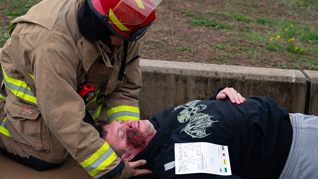 kurtaran bakım sunarak, birlikte çalıştıkları simülasyonlu toplu zayiat etkinliğine yanıt