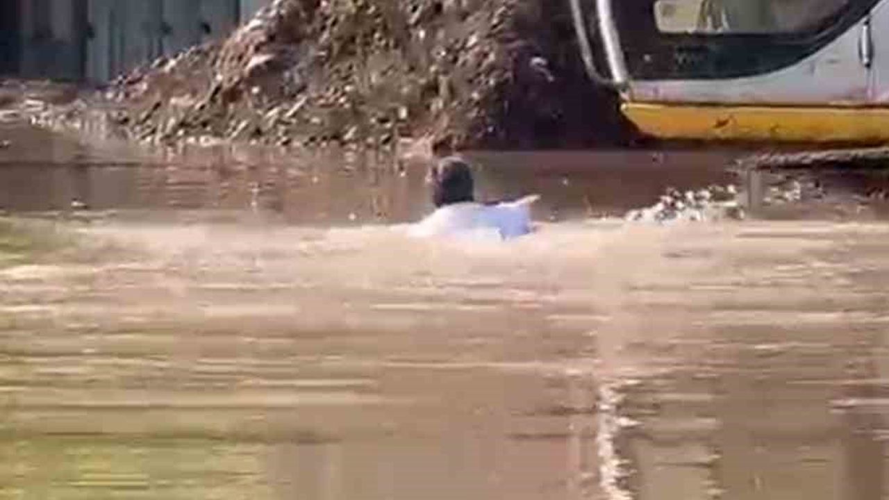 Yenişehir Mahallesi'nde bulunan şantiye alanında etkili olan yoğun yağış sonucu, bir iş makinası su altında kaldı. Yağmurun etkisini kaybetmesinin ardından, iş makinası operatörü, kepçeye ulaşmak için cesurca yüzmeye karar verdi. Yüzerek makinanın yanına ulaşan operatör, kepçeyi başarılı bir şekilde kurtararak suyun tahliyesi için çalışmalara başladı.