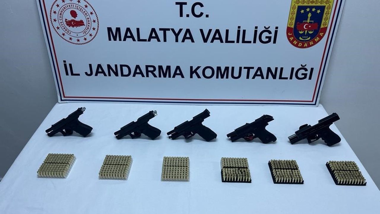 Malatya’da, İl Jandarma Komutanlığı’na bağlı ekipler tarafından silah kaçakçılarına yönelik operasyon düzenlendi. Kimliği belirlenen bir zanlı tarafından kent dışında şehre kaçak silah getirileceği bilgisi üzerine harekete geçen ekipler gözaltına alınan zanlının aracında ve ikametinde arama yaptı. Yapılan aramalarda 5 adet 9 mm çapında ruhsatsız tabanca, 6 adet şarjör, 376 adet 9 mm çapında tabanca fişeği, 250 adet 7,65 mm çapında tabanca fişeği ve 1 adet 7,62 mm çapında fişek ele geçirildi.