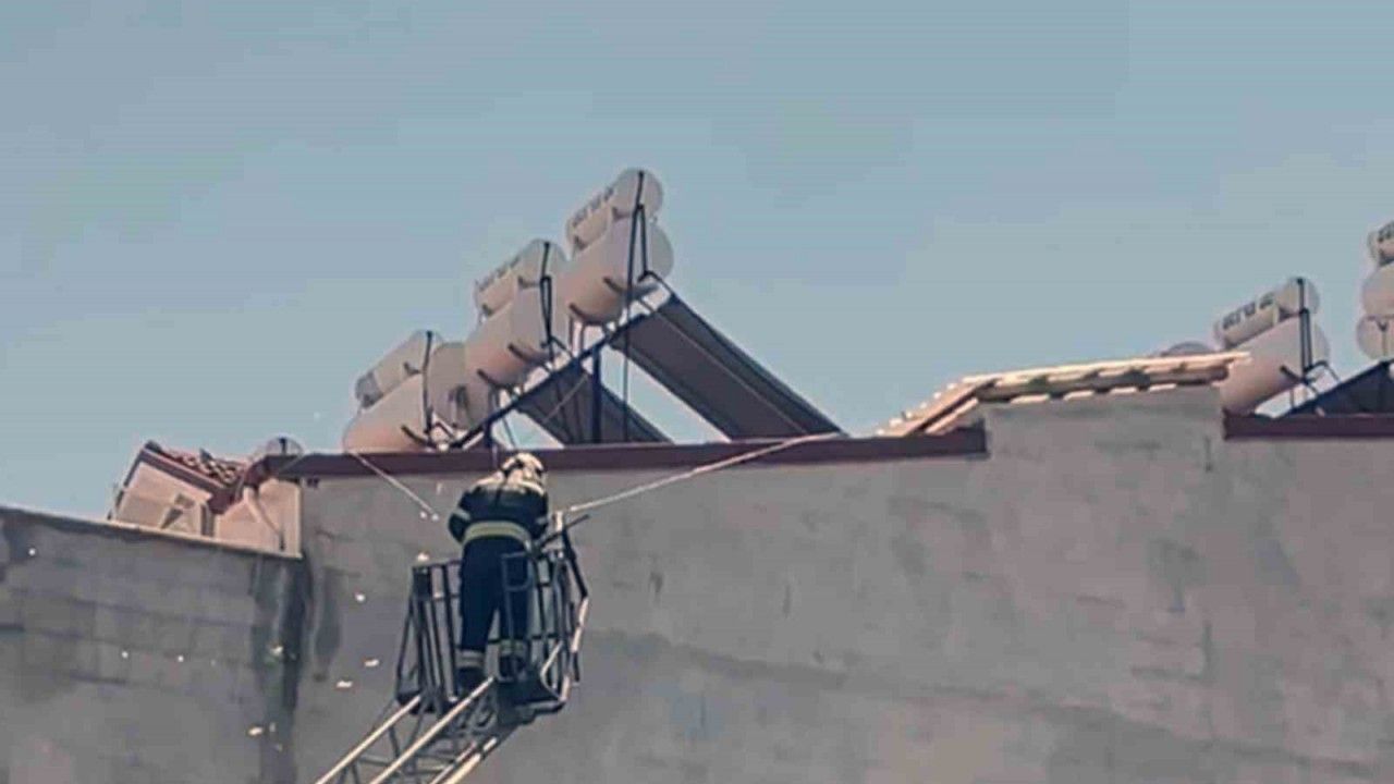Apartmanın dairesinin en üst katında kabloyla dolanan leylek itfaiye ekiplerinin merdiven ile ulaşmasının ardından kurtarılarak tekrar doğal yaşam alanına bırakıldı.