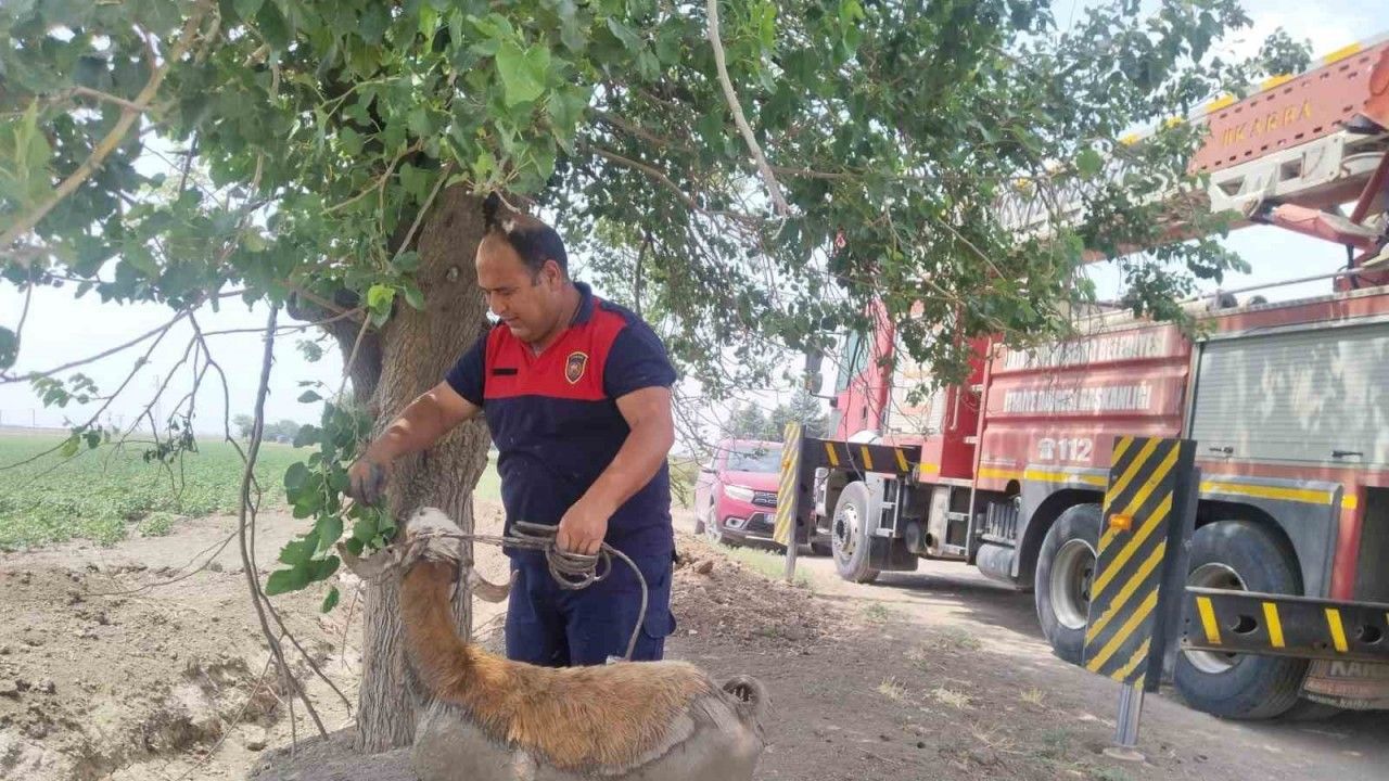 Olay, Muratpaşa Mahallesi’nde meydana geldi. Kaçan bir koyun dereye düşerek çamura saplandı. Koyunun mahsur kaldığını gören sahibi, durumu 112 Acil Çağrı Merkezi’ne bildirdi. İhbar üzerine bölgeye Hatay Büyükşehir Belediyesi İtfaiye Daire Başkanlığı ekipleri sevk edildi.