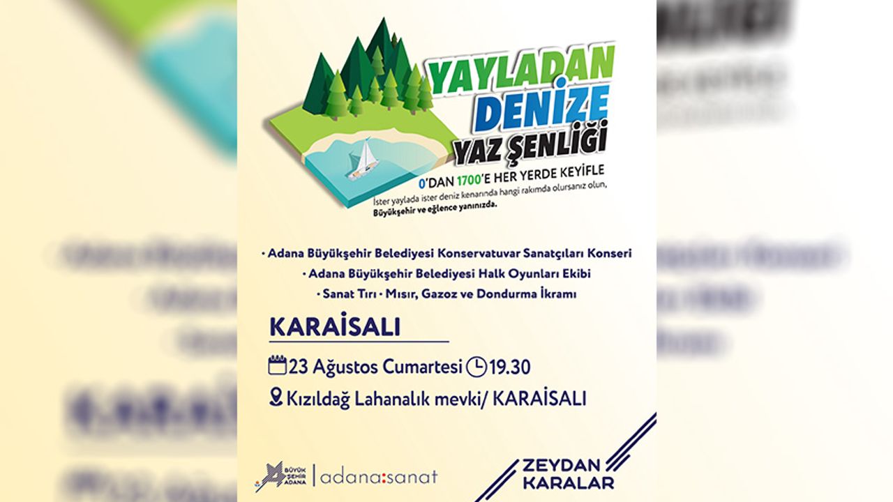 Şenlik, 23 Ağustos Cumartesi günü (yarın) saat 19.30’da Kızıldağ Lahanalık mevkii / Karaisalı’da gerçekleştirilecek. Etkinlikte Adana Büyükşehir Belediyesi Konservatuvar sanatçıları sahne alacak, halk oyunları gösterileri izleyenlere görsel bir şölen sunacak. Ayrıca Sanat Tırı da etkinlik alanında yerini alarak katılımcılara sanatla iç içe anlar yaşatacak.