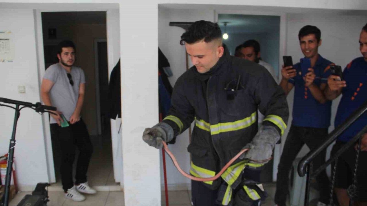 Kargo şirketi çalışanı Muzaffer Apaydın, “Arkadaşım su içmeye girdiğinde mutfakta bir yılan olduğunu söyledi. Bütün arkadaşlar toplandık aradık ve yerini belirledik. 112’yi aradık. İtfaiye geldi ve yılanı oradan aldı. Kendimiz çıkarmayı denedik ama yılan saklandı. Siyah zehirli bir yılan olduğunu söylediler. Korktuk, bir şey yapamadık” dedi.