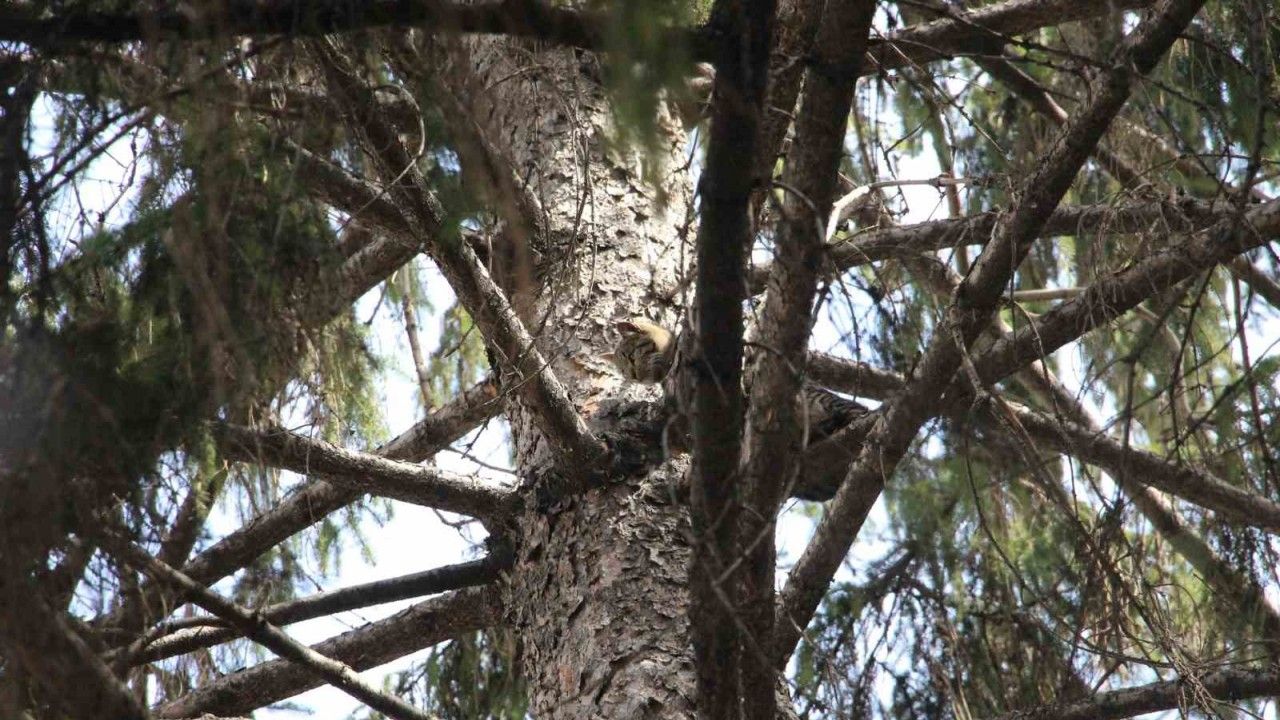 Elif Akpınar, getirdiği merdivenle çevredeki vatandaşların uyarılarına aldırış etmeden 60 metrelik ağaca tırmanmaya başladı. Yaklaşık 10 dakika boyunca ağacın en tepesine kadar tırmanan Akpınar, kediye ulaşamayınca, ağaçtan indi.