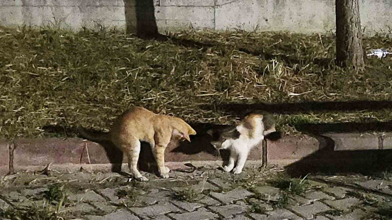 Dakikalar süren bu riskli oyunun ardından çıyan, çimlerin arasına girerek kedilerin elinden kurtulmayı başardı. O anlar çevredeki vatandaşların kamerasına yansıdı.