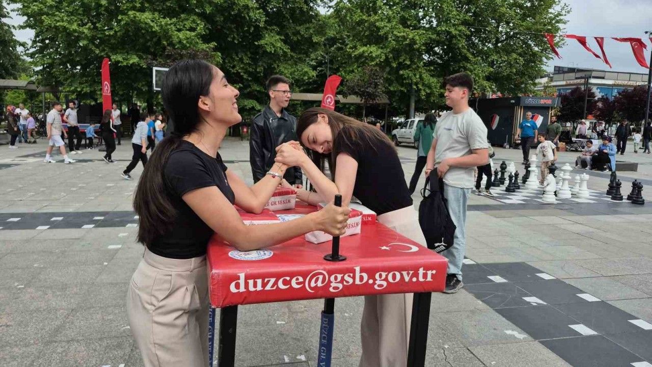Gençlik ve Spor İl Müdürlüğü ile Düzce Belediyesi Gençlik ve Spor Hizmetleri Müdürlüğü’nün iş birliğiyle kurulan “Spor Sokağı”nda ayak voleybolundan futbol sahasına, saha satrancından bilek güreşine kadar birçok farklı spor alanı oluşturuldu. Alana gelen gençler, antrenörler eşliğinde hem eğlendi hem de yeteneklerini sergiledi. Bazı spor karşılaşmaları ise kıyasıya rekabetlere sahne oldu.