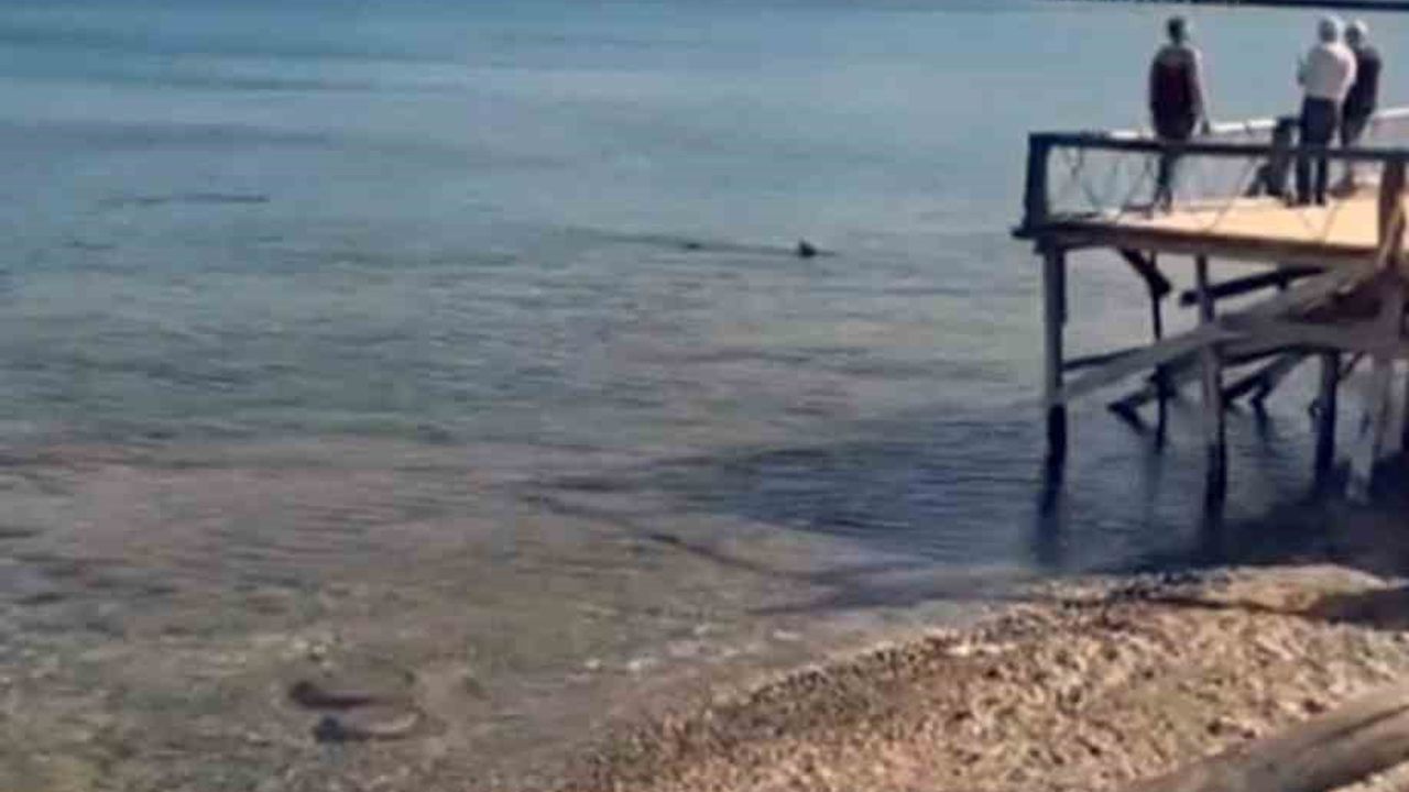 Olayın ardından bazı vatandaşlar iskeleden uzaklaşırken, bazıları ise ilgiyle köpek balıklarını izlemeye devam etti.