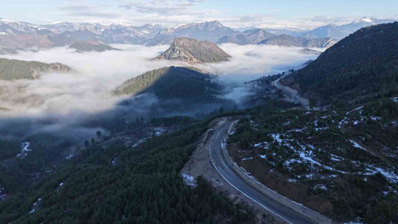 Üskiyen mevkiinde dağların arasına yayılan sis tabakası, bulutların arasından görünen evler ve orman dokusuyla kartpostallık görüntüler oluşturdu. Ortaya çıkan bu eşsiz manzara, hem doğaseverlerin hem de fotoğraf tutkunlarının ilgisini çekti.