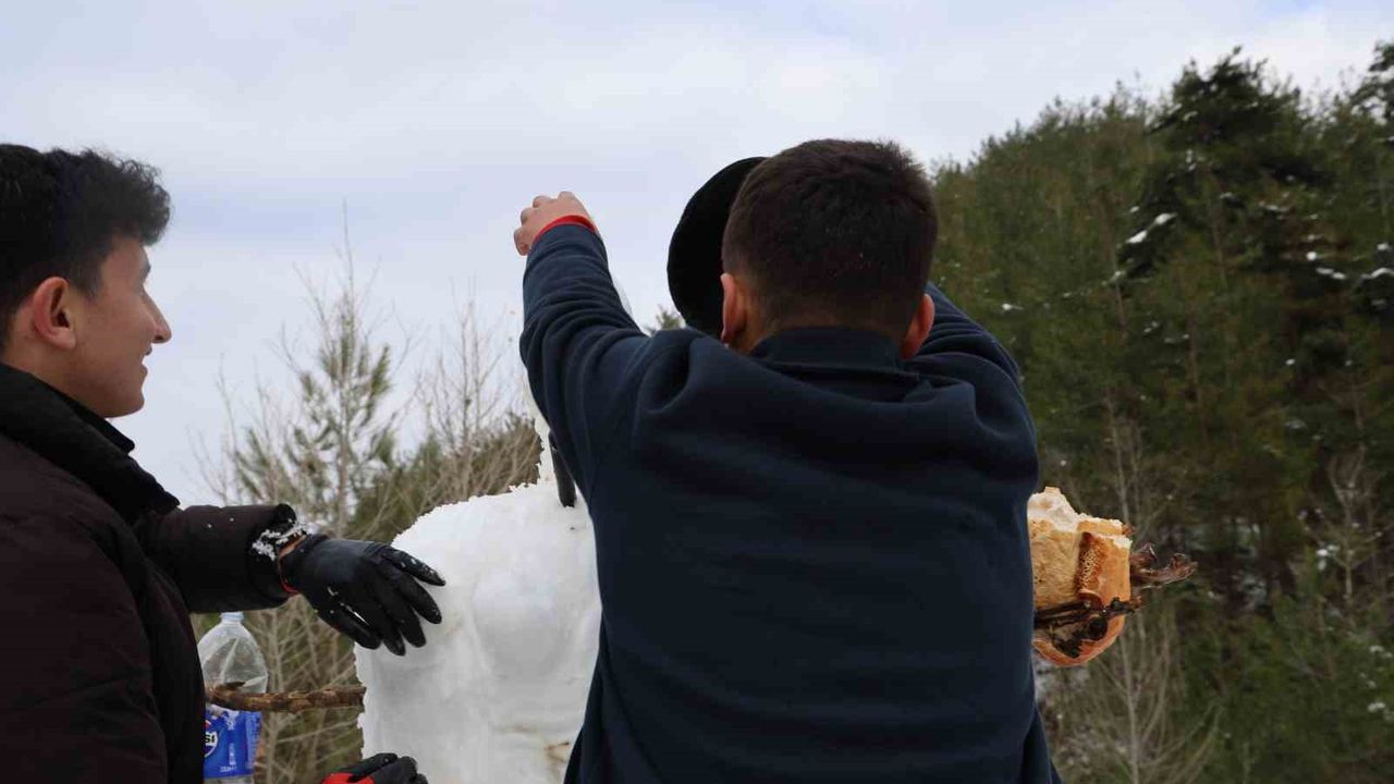 Horzum Yaylası’na arkadaşlarıyla birlikte gelen Şeref Kopçak da eğlenceli anlara farklı bir renk kattı. Aracının üzerine kardan adam yapan Kopçak,