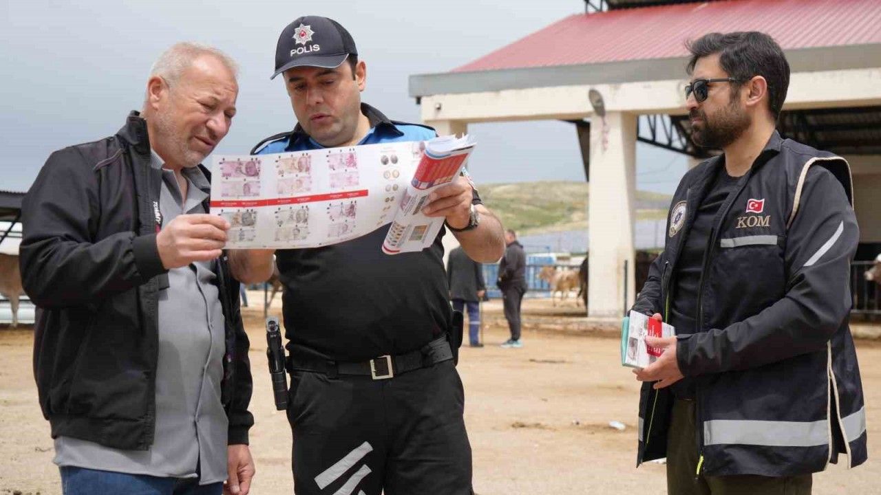 Ekipler, hayvan alım-satımında dikkat edilmesi gereken noktaları anlatırken, sahte paranın tespitine yönelik basit yöntemleri paylaşıyor ve bu bilgilerin yer aldığı broşürler dağıtıyor. Ayrıca, şüpheli durumlarda 112 hattının aranması gerektiğini vurgulayarak vatandaşların bilinçlenmesini sağlıyorlar.