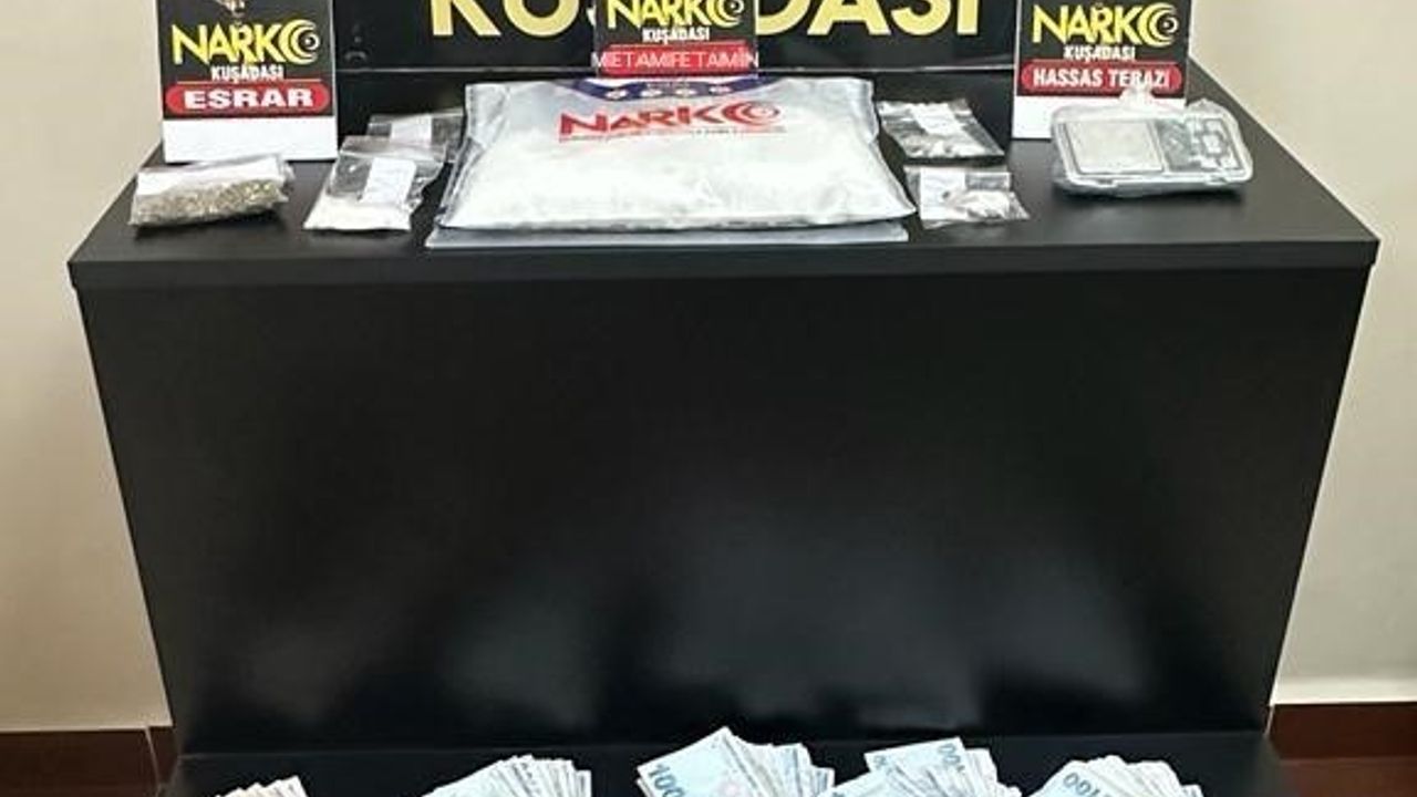 Edinilen bilgiye göre, Kuşadası’nda uyuşturucu madde satışı ve kullanımın önlenmesi çalışmaları sonucunda dört şüpheli şahıs yakalanarak gözaltına alındı. Yapılan çalışmada daralı ağrılı 821,69 gram metamfetamin maddesi, 7,50 gr tütünle karışık esrar, 21 bin 400 TL ve 10 Euro para ele geçirilirken, şahsın yapılan ikamet aramasında da 1 adet hassas terazine el konuldu. Olayla ilgili olarak Z.B. isimli kadın sevk edildiği mahkeme tarafından tutuklanırken, A.G., B.S., T.S. ise serbest bırakıldı.