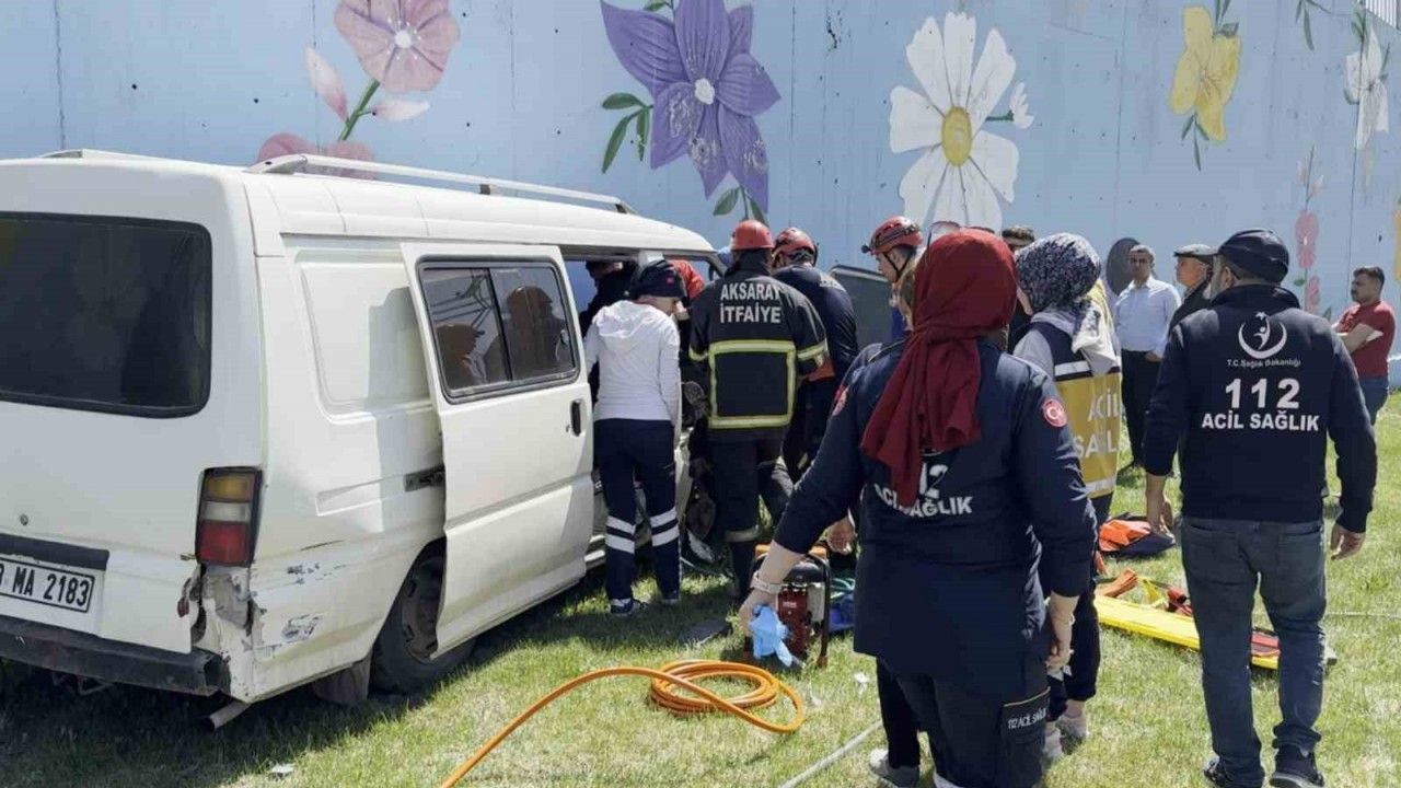 Kaza, Yunus Emre Mahallesi 3. Bulvar üzerinde yaşandı. Edinilen bilgiye göre, Yunus Emre Mahallesinden şehir merkezi istikametine seyreden A.S. idaresindeki 68 MA 2183 plakalı minibüs, seyir halindeyken lastiğinin patlaması ve sürücüsünün direksiyon hakimiyetini kaybetmesi sonucu kontrolden çıkarak önce refüjdeki çim sulaması yapan İ.K. isimli belediye işçisine sonra da üst geçidin duvarına çarptı. Minibüs sürücüsünün direksiyon başında sıkıştığı kazayı gören diğer araç sürücüleri durumu 112 Acil Çağrı Merkezine bildirdi. İhbar üzerine olay yerine polis, itfaiye ve sağlık ekibi sevk edildi. Polis ekiplerinin güvenlik önlemi aldığı yolda sağlık ve itfaiye ekipleri sıkışan sürücüyü bulunduğu yerden kurtardı. Kazada sürücü ve belediye işçisiyle birlikte minibüste yolcu olarak bulunan 3 kişi olmak üzere toplam 5 kişi yaralandı. Yaralılar olay yerine gelen ambulanslarla Aksaray Eğitim ve Araştırma Hastanesi Acil Servisine kaldırılırken, sürücünün sağlık durumunun ağır olduğu öğrenildi.