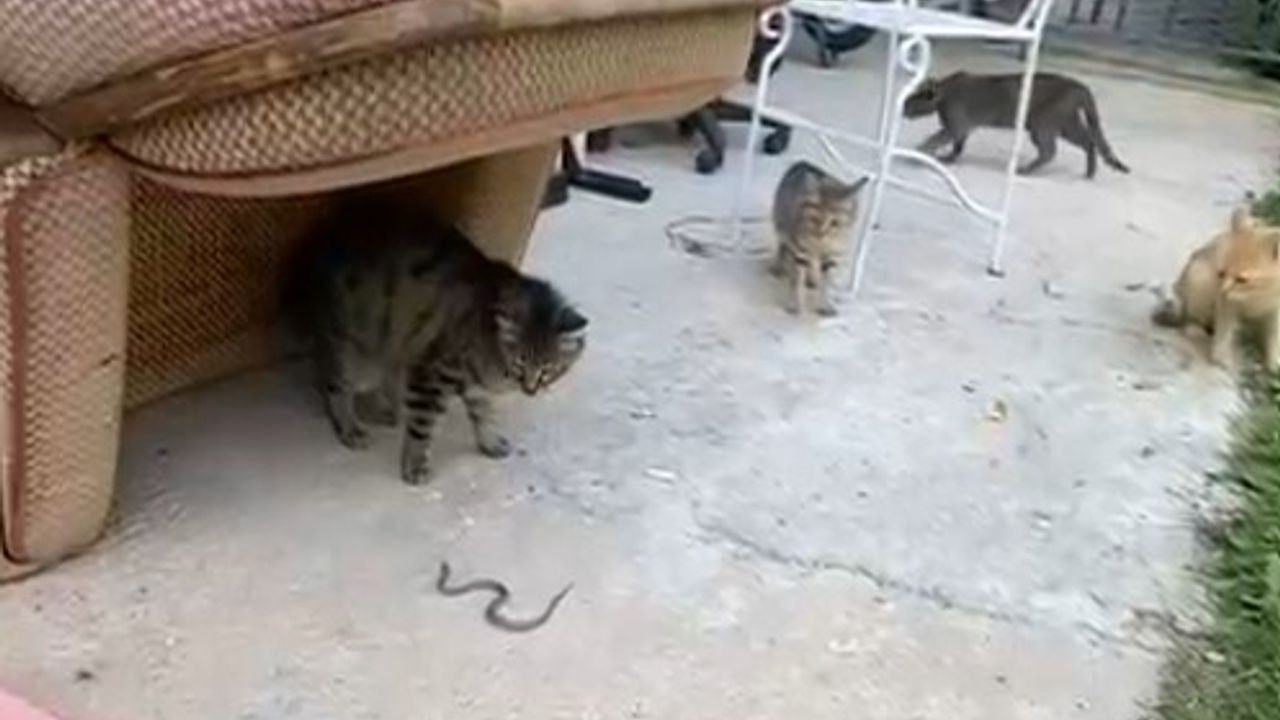 Kedilerin temkinli ancak oyunbaz tavırlarıyla yılanla kurduğu etkileşim, kısa sürede ilgi çeken görüntüler oluşturdu. Bahçede yaşanan bu anlar, sosyal medyada da paylaşılırken, doğadaki canlıların karşılaşmasına dair ilginç bir örnek olarak yorumlandı.