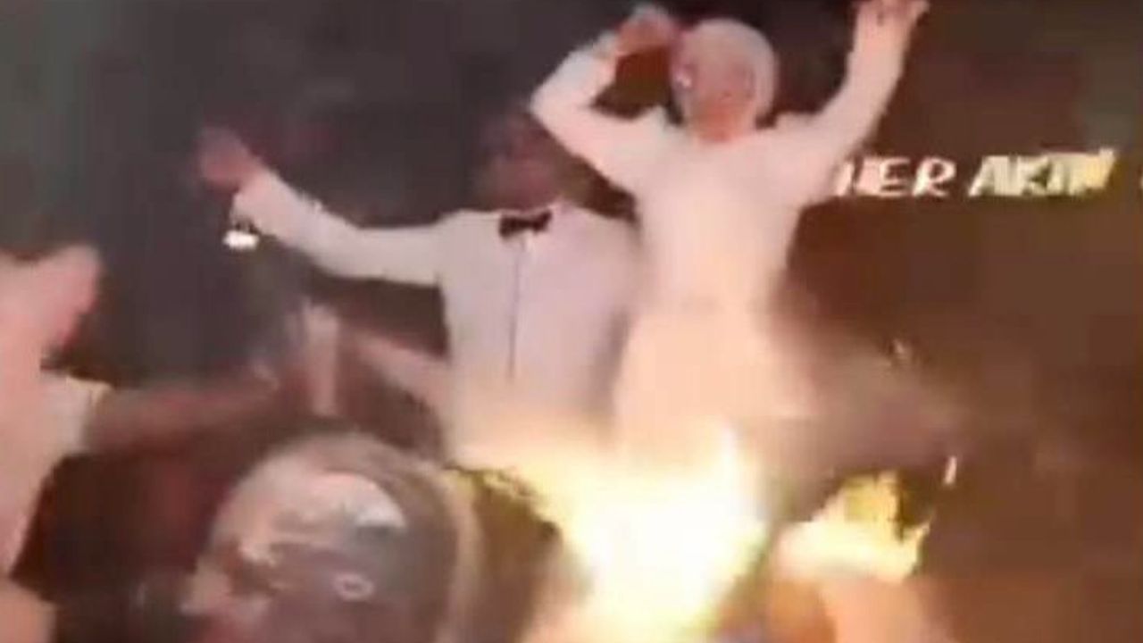 Olay, düğüne katılan konuklardan birinin cep telefonuyla kaydettiği görüntülerle sosyal medyada geniş yankı buldu. Görüntülerde, gelin ve damadın sahnede dans ettiği esnada yapılan şov sırasında, katılımcılardan birinin kafasına köpük sıkıldığı, ardından ise elde tutulan meşalelerden sıçrayan kıvılcımların saçları tutuşturduğu anlar net şekilde görülüyor.