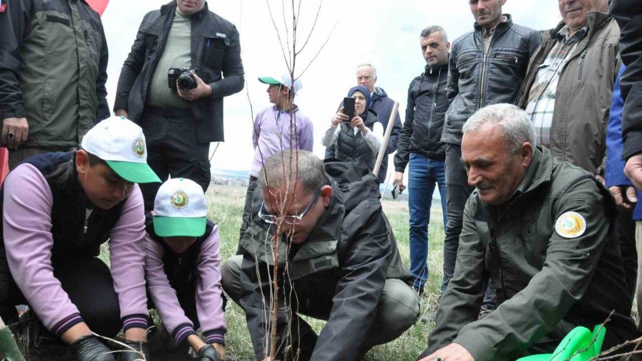 Selim’de düzenlenen meyve fidanı dikimine Vali Ziya Polat, protokol üyeleri, öğretmenler ve öğrenciler katıldı.