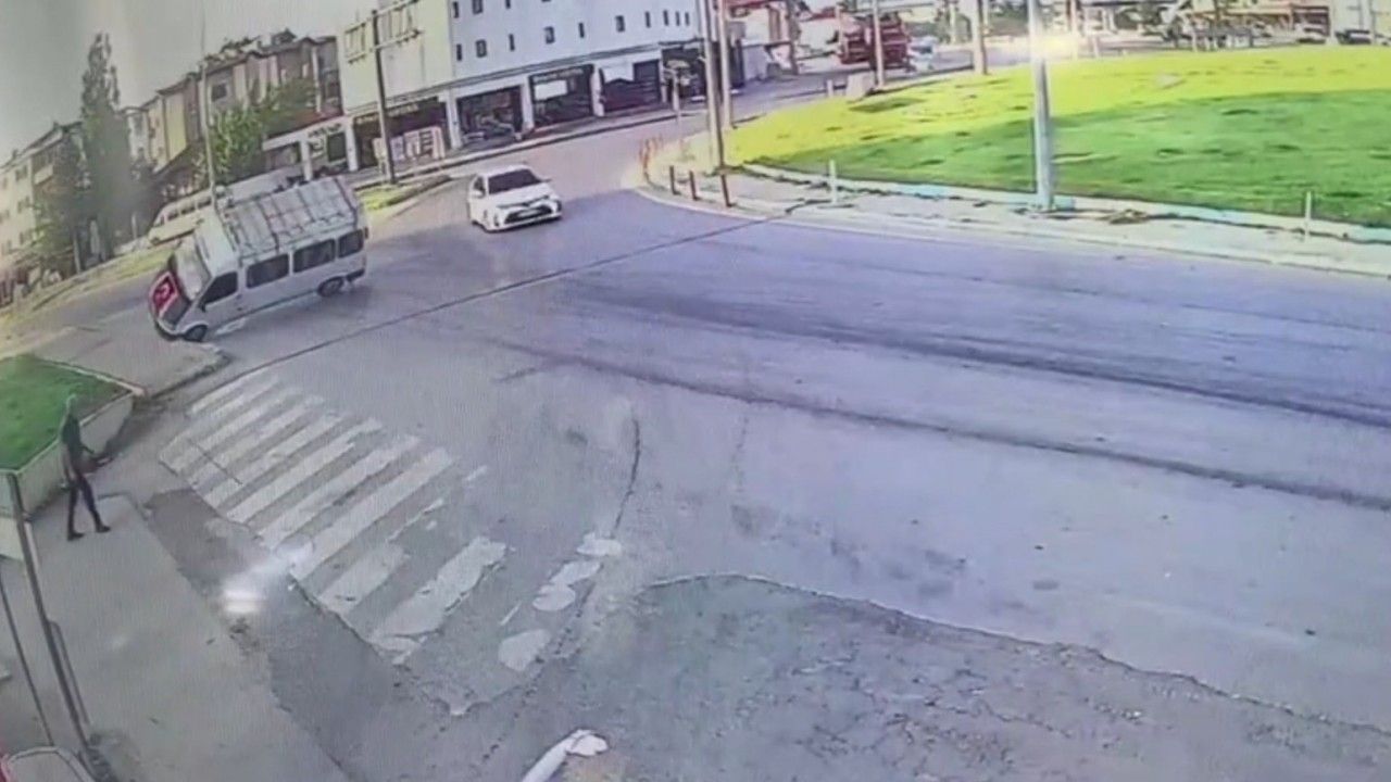 Görüntülerde, minibüs kavşağa girdiği anda yaya yoluna çarpıp devrildiği, kaza sonrası minibüs içerisinde bulunan tarım işçilerinin çevrede bulunan vatandaşlar tarafından çıkartıldığı anlar yer aldı.