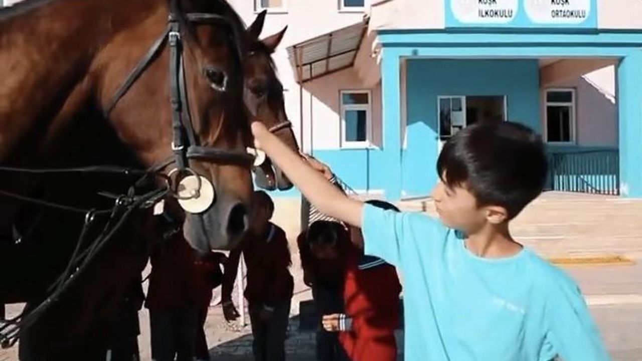 Edremit ilçesinde bulunan Köşk İlk ve Ortaokulu çevresinde devriye görevini yürüten Atlı Jandarma ve Trafik Timleri, özellikle okul giriş-çıkış saatlerinde öğrencilerin güvenliğini sağladı. Öğrenciler, atlı jandarma birliklerini görünce büyük bir heyecan yaşadı ve atlarla etkileşime girerek unutulmaz anlar geçirdi.