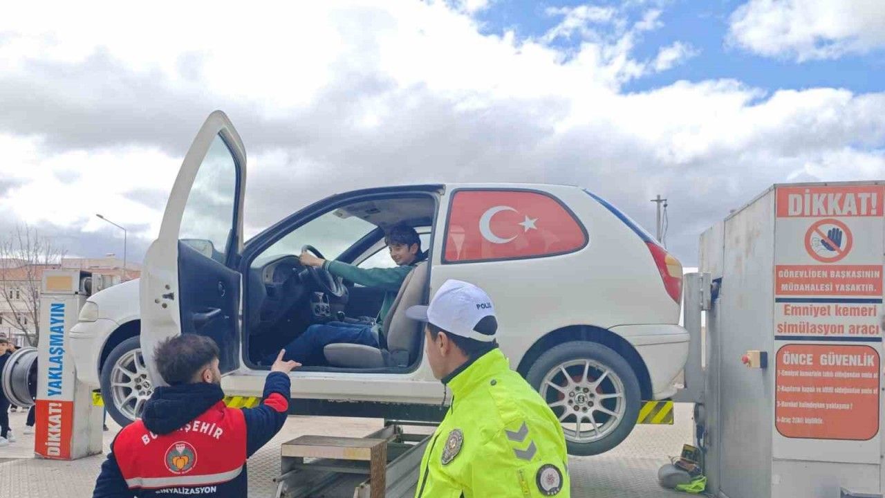 Uygulamayla, emniyet kemerinin muhtemel kazalardaki hayati rolü öğrencilere aktarılırken, trafik güvenliği konusunda da farkındalık oluşturulması hedeflendi. Öğrenciler simülasyona yoğun ilgi gösterdi.