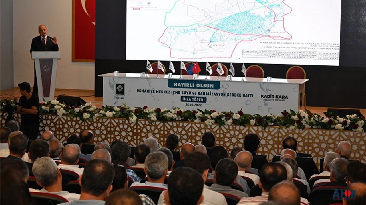 Osmaniye Belediyesi tarafından projelendirilen ve hayata geçirilen Merkez İçme Suyu ve Kanalizasyon Şebeke Hattı imza töreni gerçekleşti. Osmaniye tarihinin en büyük alt yapı yatırımı olan İçme Suyu ve Kanalizasyon Şebeke hattı imza töreni Ahmet Şekip Ersoy Kültür Merkezinde yapıldı.