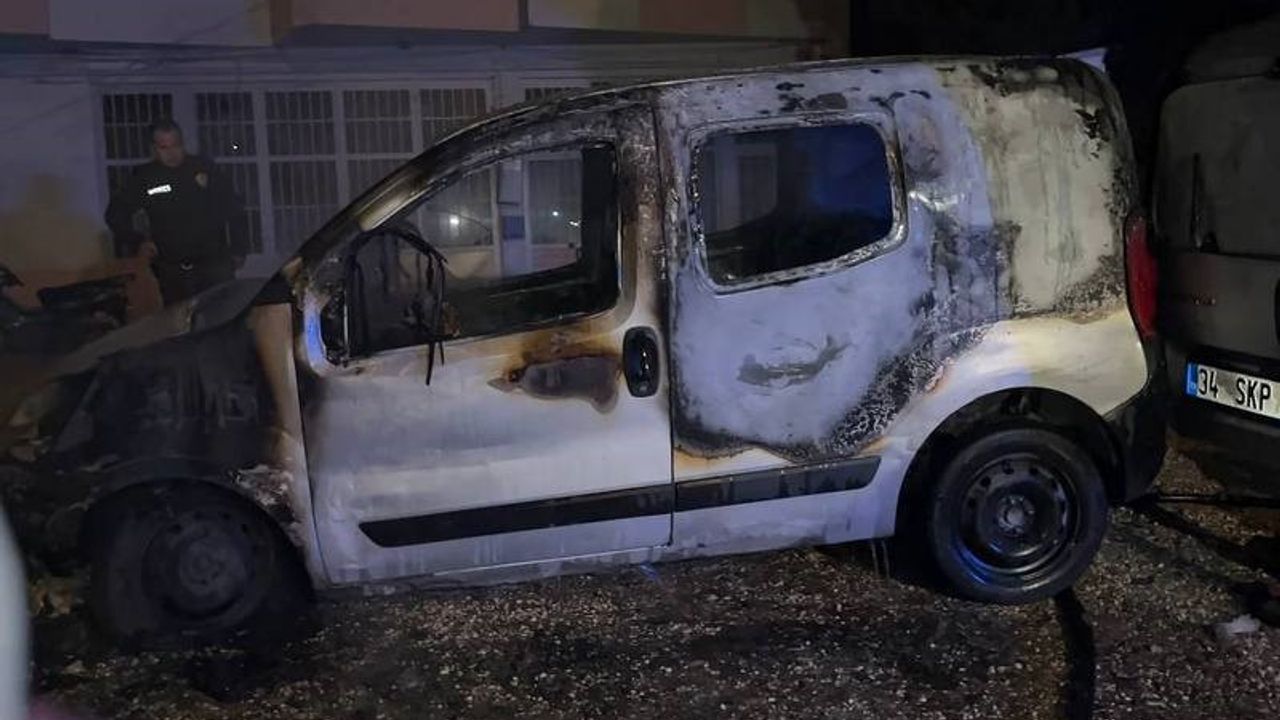 K.Y.’ye ait 34 SKP 45 plakalı hafif ticari araç, gece saatlerinde henüz belirlenemeyen bir nedenle alev aldı. Yangının bildirilmesi üzerine olay yerine itfaiye ve polis ekipleri sevk edildi. İtfaiye ekipleri, alev topuna dönen aracı kontrol altına almak ve söndürmek için yoğun çaba sarf etti.