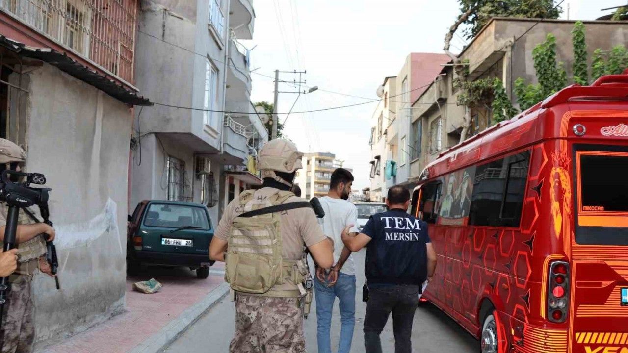Edinilen bilgiye göre, Mersin İl Emniyet Müdürlüğü Terörle Mücadele (TEM) Şube Müdürlüğü ekiplerince PKK/KCK terör örgütünün faaliyetlerinin engellenmesi ve deşifre edilmesine yönelik yapılan çalışmalarda terör örgütünün Siirt’in Eruh ilçesinde gerçekleştirdiği ilk silahlı eyleminin sözde yıl dönümü olan 15 Ağustos’ta eylem arayışında olan şüpheliler tespit edildi. Daha önce örgüt için farklı bölgelerde de faaliyet yürüten 11 şüpheliyi belirleyen ekipler, bu sabah operasyon için düğmeye bastı. Özel Harekat ve dron desteğiyle 200 polisin katıldığı şafak operasyonunda 9 şüpheli gözaltına alındı. Şahısların adreslerinde yapılan aramalarda çok sayıda dijital ve görsel materyal ele geçirildi. Gözaltına alınan şüpheliler işlemleri yapılmak üzere emniyete götürülürken, adreslerinde bulunamayan 2 kişiyi yakalamak için çalışmalar devam ediyor.