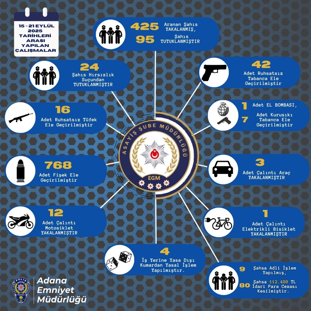 Adana Emniyet Müdürlüğü, kent genelinde halkın huzur ve güvenliğini sağlamak amacıyla operasyonların aralıksız devam edeceğini açıkladı.