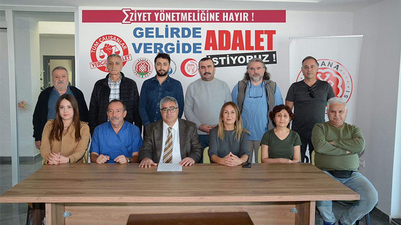 Adana Tabip Odasında düzenlenen basın açıklamasında konuşan Adana Tabip Odası Başkanı Uzm. Dr. Özden Polatöz, sağlık çalışanlarının süregelen taleplerini ve devam eden eylemlerin gerekçelerini hatırlattı.