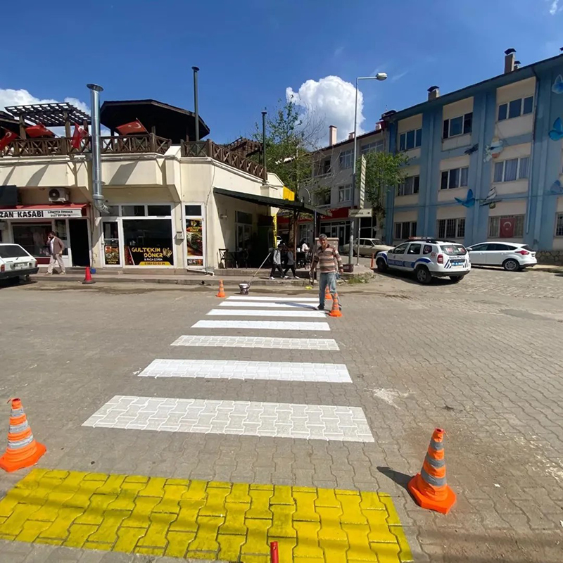 Belediye personelinin yürüttüğü çalışmalar kapsamında ilçenin ana arterlerinde solmuş olan yaya geçidi işaretleri boyandı. Ayrıca bazı bölgelerde kilit parke taşları da yenilendi.