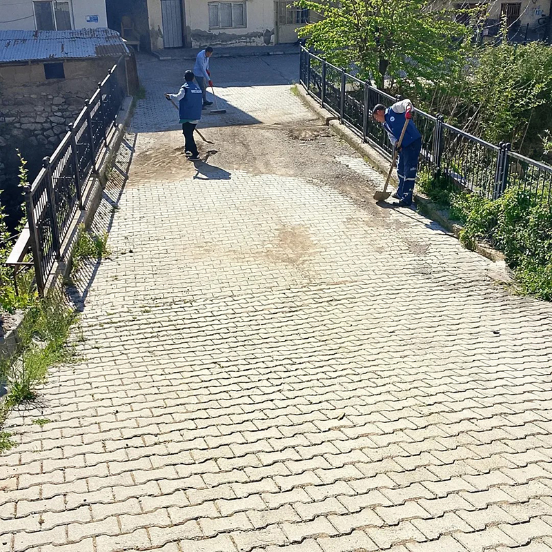 Bunun yanı sıra toprak kaplı yolların da temizlik ekibi tarafından temizlendiği kaydedildi.