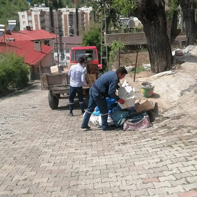 Bir yandan yol çalışmaları sürdürülürken ekiplerin bir kısmı da yol kenarlarına bırakılmış olan çöpleri topladı.