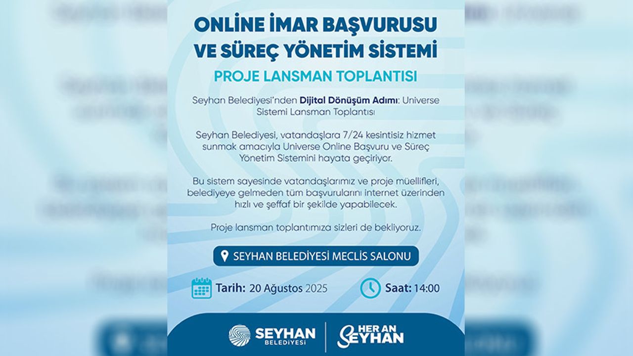 Seyhan Belediyesi, Universe Sistemi Lansman Toplantısına tüm vatandaşları davet etti. Toplantı, 20 Ağustos saat 14:00’te Seyhan Belediyesi Meclis Salonunda gerçekleştirilecek. Belediye yetkilileri, vatandaşların toplantıya katılımıyla sistem hakkında bilgi alabileceklerini ve sorularını doğrudan yöneltebileceklerini belirtti.