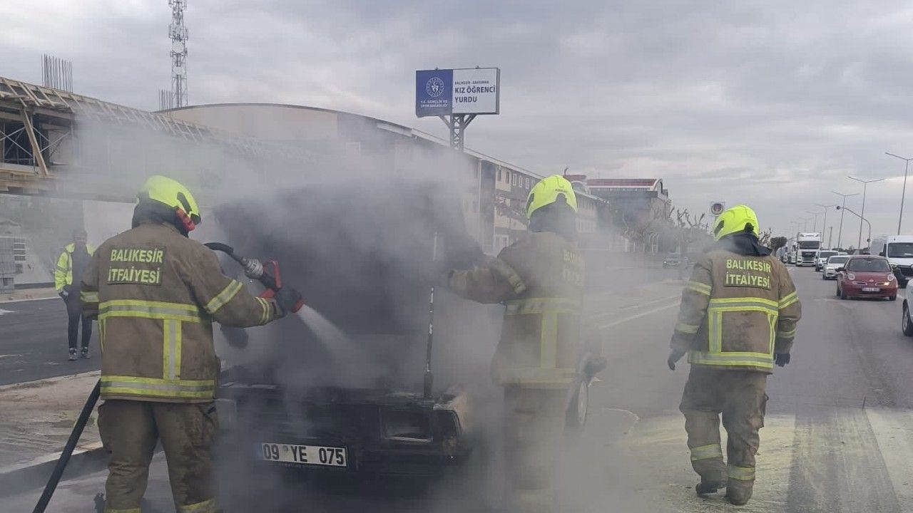 Olay, Bandırma ilçesi 600 Evler Mahallesi Eti Maden Kavşağı’nda H.B. hakimiyetindeki 09 YE 075 plakalı araçta meydana geldi. Aracıyla seyir halindeyken motor bölümünden yükselen dumanları fark eden H.B. aracını hemen yolun kenarına çekerek itfaiye ekiplerini aradı. Kısa sürede olay yerine gelen itfaiye ekipleri, yangını büyümeden söndürdü.