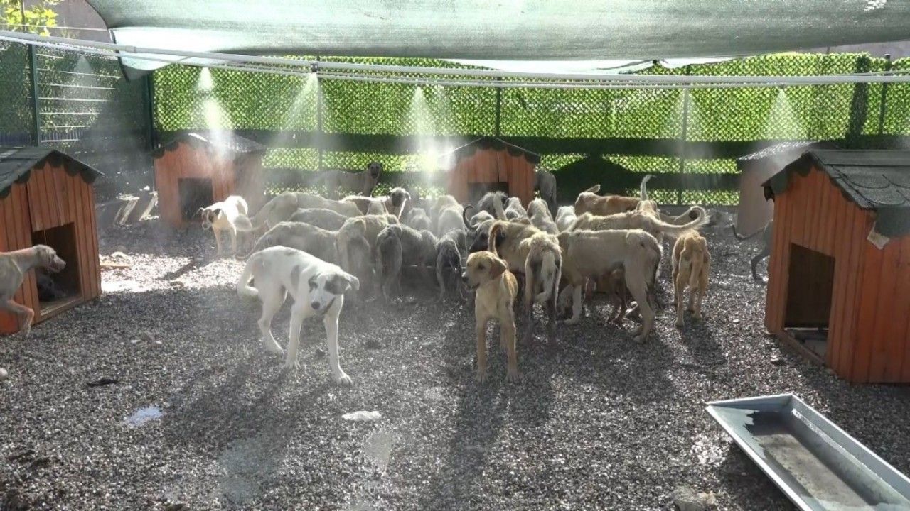 Mevsim normallerinin üzerinde seyreden sıcaklıklara karşı yaşam alanlarında yeşil tentelerle gölgelikler ve su fıskiyeleri kurularak hayvanların serin kalmaları sağlanıyor. Barınaktaki köpekler günde iki defa besleniyor, kediler ise klima ile serinletiliyor.