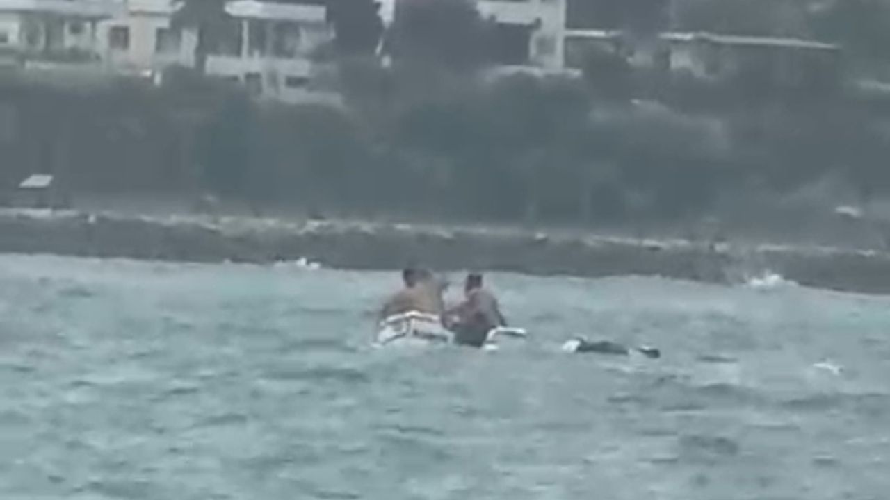 Gençler son anda vatandaşlar tarafından kurtarılırken, olay anı saniye saniye kaydedildi. Botla denize açılan iki gençten biri suya atlayınca, dengesini kaybeden bot devrildi. Suyun ortasında bota tutunarak hayatta kalmaya çalışan gençleri sahildekiler fark etti. Küçük bir tekneyle olay yerine ulaşan vatandaşlar, gençleri kurtarıp kıyıya çıkardı.